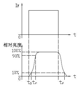 1.響應(yīng)時間從使用角度來看,就是LED點亮與熄滅所延遲的時間,即圖3中tr 、tf 。圖中t0 值很小,可忽略。