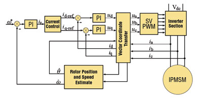 圖2內置永磁同步馬達(IPMSM)向量控制系統框圖
