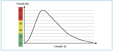 圖 1 典型的 120VAC 浪涌電流曲線圖