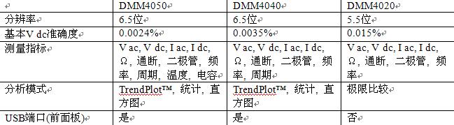 DMM系列提供了多種型號,可以滿足您的需求和預算。下列萬用表提供了2x4線電阻測量功能。