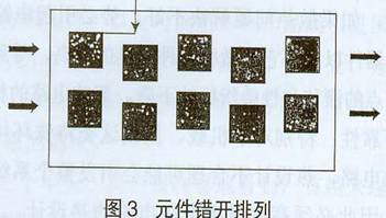 交錯(cuò)分散排列。在布板設(shè)計(jì)進(jìn)行元件布局時(shí),應(yīng)將發(fā)熱元器件與一般器件及溫度敏感器件區(qū)分開(kāi),發(fā)熱器件周?chē)鷳?yīng)留有足夠的散熱氣體流動(dòng)通道,發(fā)熱元件應(yīng)錯(cuò)開(kāi)分散排列,如圖3所示。這與通常布局時(shí)的整齊劃一排列恰好相反,有利于改善散熱效果。[page]