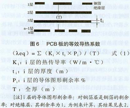 評(píng)價(jià)PCB的散熱能力,就需要對(duì)由導(dǎo)熱系數(shù)不同的各種材料構(gòu)成的復(fù)合材料一一PCB用絕緣基板的等效導(dǎo)熱系數(shù)(九eq)進(jìn)行計(jì)算。PCB板的等效導(dǎo)熱系數(shù)見(jiàn)圖6所示。