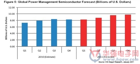 2011年的其它趨勢包括,電源IC集成度進一步提高;擁有進一步集成其芯片的技術的供應商,將在銷售收入方面獲益最多。