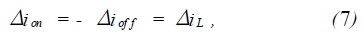 Δion為導(dǎo)通狀態(tài)紋波電流;ton為導(dǎo)通時(shí)間;Δioff為關(guān)斷狀態(tài)紋波電流;toff為關(guān)斷時(shí)間。