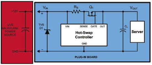 為此,熱插拔控制器曾被斷言是為分布式電源系統(tǒng)提供非常可行的系統(tǒng)保護(hù)和電氣管理的首選方法,特別是可以滿足服務(wù)器市場的嚴(yán)格要求。這類應(yīng)用的熱插拔控制器的特點(diǎn)一般包括:帶電板插入和拔出的安全控制(浪涌電流控制)、故障監(jiān)測診斷和保護(hù)、精確的電氣(電壓、電流、功率)和環(huán)境(溫度)參數(shù)測量,以提供模擬或數(shù)字域的實(shí)時系統(tǒng)遙測。特別是,如果一個服務(wù)器機(jī)架上的一個線卡發(fā)生故障,該故障應(yīng)與該特定線卡相隔離,這樣既不影響系統(tǒng)背板,也不影響由帶電背板供電的其他線卡。通常情況下,熱插拔控制器連接到以下器件: