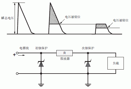 在特定的峰值脈沖電流定額下,TVS上會出現鉗位電壓。TVS的擊穿電壓在非常小的電流下測得(例如1mA或10mA),它不同于應用條件下的實際雪崩電壓。因此,半導體制造商所標注的是在大電流下的典型或最大擊穿電壓。