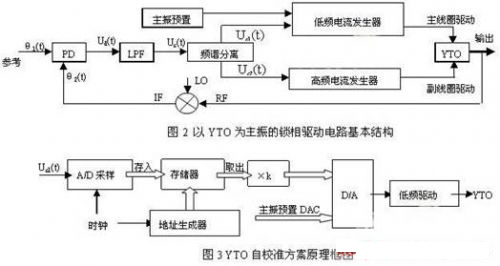 以YTO作為主振的現代微波信號發生器,基本都采用了復雜的鎖相環實現整機頻率合成。根據鎖相環特性,如果主振輸出信號頻率與理論輸出頻率相差太大,超出了環路的捕獲帶寬,則不能通過捕獲而進入同步跟蹤狀態,系統將會失鎖。因此,在整個輸出頻段中對YTO主振電路實施校準,使其達到一定的預置準確度而保證環路迅速進入鎖定狀態,是十分必要的。