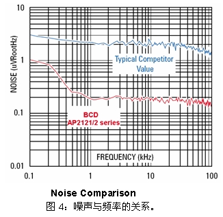 當(dāng)然也有例外,個別歐美的大廠商采用先進(jìn)的工藝設(shè)計生產(chǎn)的的CMOS LDO把本該外面加的Bypass電容做到了芯片里面,這樣的LDO產(chǎn)品的噪聲約為100 uVrms的水平。
