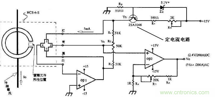 圖2:霍爾電流傳感器的應用電路圖