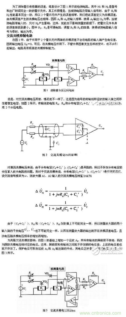 所取的電位經運放A4組成的電壓跟隨器驅動電纜的屏蔽層,這樣就較好地抑制了交流共模電壓的干擾。圖3所示的電路,適用于各種傳感器電路。