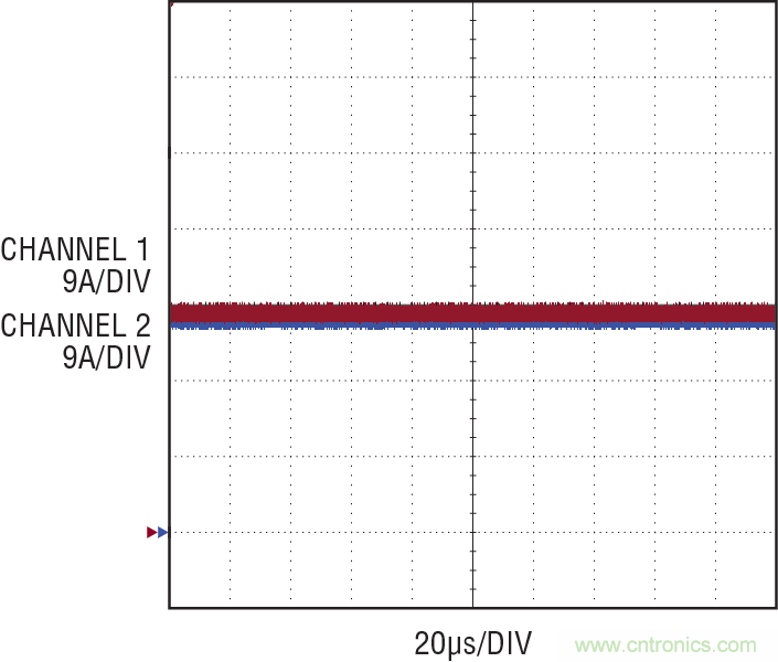 圖 10:在滿負(fù)載時 LED DC 電流均分,兩個并聯(lián)驅(qū)動器之間的電流差別非常小。