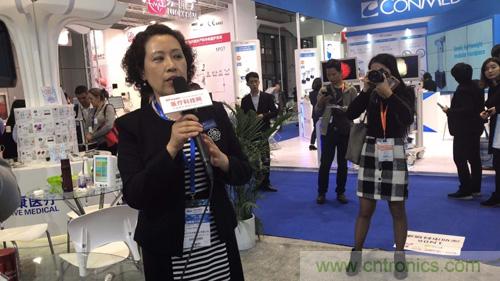 本次展會上,科瑞康醫療總經理王佳介紹了科瑞康醫療強勢推出的“智慧醫療、共享健康”整體解決方案及監護儀新品,還有針對女性的盆底康復治療系統。王經理從容詳細的講解,引來眾多觀眾圍觀。
