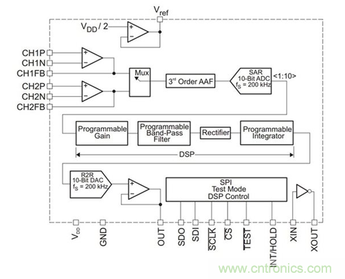 表 2 顯示了各種頻率輸入信號的輸出信號振幅的測試數(shù)據(jù)。 已對每個器件的帶通濾波器進行編程,使其具有 6.94kHz 的中心頻率,因此應抑制遠離該中心頻率的輸入信號。