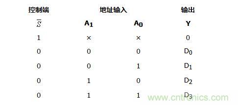 由表2可知,具有兩位地址輸入A0、A1的4選1數據選擇器,當使能控制端=0時,輸出與輸入之間的邏輯關系式為