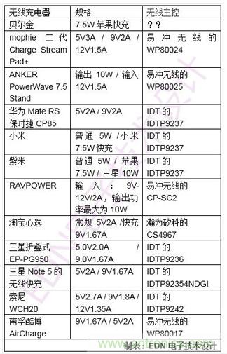 EDN電子技術(shù)設(shè)計(jì)的編輯對(duì)比了11款流行的無線充電器,整理出他們的主控芯片: