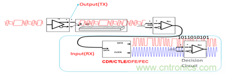【導(dǎo)讀】在用戶進行系統(tǒng)或者芯片測試的時候,一般主要驗證幾個方面的性能和可靠性,包括系統(tǒng)發(fā)送端的信號質(zhì)量,鏈路的損耗/串?dāng)_,接收端的容限。如下圖1,一個鏈路系統(tǒng)的基本架構(gòu)。通常在發(fā)送端會使用FFE來補償鏈路的損耗,接收端會采用DFE/FFE等方法來進行均衡,一些比較高速率的標(biāo)準(zhǔn)如PCIE 4.0/5.0,SAS4等還會采用FEC來進行糾錯,當(dāng)然接收端還需要CDR來從串行信號里面進行時鐘恢復(fù)得到同步時鐘來對信號進行采樣。