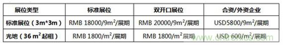 標準展位: (3M×3M)展位(包括三面圍板、楣板、一桌二椅、220V電源插座、清潔費等)。
