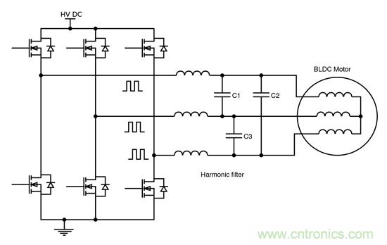 圖4:電機驅動EMC濾波中的薄膜電容器。