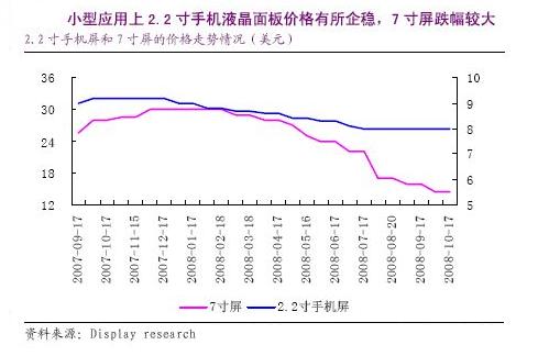 圖3:小型應用上2.2寸手機液晶面板價格有所企穩,7寸屏跌幅較大。