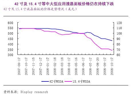 圖4:42寸和15.4寸等中大型應用液晶面板價格仍在持續下跌。