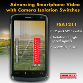 FSA1211具有超過720MHz的帶寬和高ESD (5.5 kV)特性,是高速數據路徑上隔離電容和保持信號完整性的最佳解決方案。此外,當隔離多余的并行接口時,FSA1211可以減小信號路徑上的EMI輻射干擾,提升射頻靈敏度降幅 (RF desense)。傳統的并行解決方案由于產生額外的“走線分支”(stub),所以會導致信號衰減,從而使相機模塊的圖像劣化。采用三個模擬開關抑或是一種解決方案,但這會增加設計的復雜程度,并提高了整體材料清單 (BOM) 成本。相比而言,FSA1211以更為優勢的成本提供了穩健的隔離性能和簡單的設計方法。