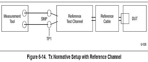 在USB3.0的TX的眼圖和抖動測試中,測量的是待測試信號經過參考測試信道后TP1點的眼圖和抖動。如下圖4中的Reference test channel即為參考測試信道,在規范中定義了long channel、short channel和3米電纜三種參考測試信道。如果使用long channel或者較長電纜,信號到達接收端時衰減比較大,眼圖已經閉合,USB3.0芯片接收端使用了CTLE均衡器對信號進行均衡后(CTLE均衡器介紹見本文最后一部分),信號眼圖的質量將大大改善,所以要求測試儀器分析出CTLE均衡器處理后信號的眼圖和抖動。
