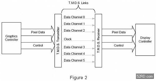 資料和時脈頻率不同的原因在于資料以稱作圖元的10位元資料包發(fā)送。對解析度要求低于每秒165萬圖元的視頻顯示器而言,單一鏈路連接已經(jīng)足夠;假若清晰度要求在每秒165萬和350萬圖元之間,可使用第二條鏈路并行發(fā)送資料。由于兩條鏈路共用一個時脈對,因此最大的時脈頻率始終為165 MHz。圖2顯示了基本的雙鏈路架構(gòu),并可供單鏈路或雙鏈路連接使用。