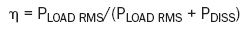 [page]這符合PLOADPEAK=I2PEAKRL=49W/通道的輸出峰值功率,和PLOADRMS=PLOADPEAK/2=24.5W/通道的RMS輸出功率。采用效率公式: