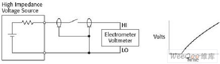 高阻抗電壓開關需要用在監測電化學電池、測量半導體電阻率之類的應用中。開關和測量具有高內部阻抗的電壓源會遇到諸如偏移電流、雜散漏流和靜電干擾之類的誤差。采用并聯電容技術可以延長穩定時間。