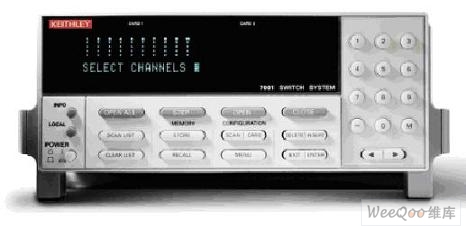線纜和印制電路板的絕緣電阻測試或者耐壓測試通常都涉及高電壓的開關切換。為了避免損壞開關卡,在開關切換200V以上的電壓時必須十分謹慎,要選擇額定指標符合所需電壓與功率大小的開關卡,例如用于3706型系統開關/萬用表(如圖3所示)的吉時利3720型雙1x30多路復用卡,以及額定指標合適的線纜。如果可行,采用冷開關的方式可以延長繼電器的壽命,增大所容許的電流。