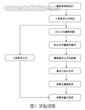 透過本研究實驗所規(guī)劃之流程(圖1),搭配田口實驗規(guī)劃法,加以探討模流分析與實際射出成形所得之結果,是否可有效改善塑料平坦度,進而獲得最佳化之射出成形參數(shù)。