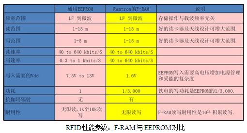 在應用中,F-RAM的等能量、等距離讀寫有何特別優勢?舉例說明,在電子道路收費中,傳統的汽車RFID標簽采用的是EEPROM,它的寫入速度比較慢,寫入距離也比較近,必須采用更高頻率的信號以延長信號輻射距離,從而為讀寫數據贏得時間,而且對車速也有一定限制,這對于車輛密集的擁堵路段來說是難以接受的。如果汽車RFID標簽采用F- RAM,很多設計變成被動式的,不需要電池,可以長距離對F-RAM做讀寫,當汽車自動收費站以標準的860M-960MHz數據采集頻率,由于F-RAM將寫入距離從5m延長到15m,同時具有非常快寫入速率,從而可以大幅節省自動收費系統的部署成本和通關時間,此外,F-RAM寫入電壓只需1.6V,EEPROM的寫入電壓高達13V,所以采用EEPROM的存儲器的應答器還需要額外的電池供電,而F-RAM不需要,因此可以節省許多功耗。因此,在整個電子道路收費系統上是一場新的革命,成本降低非常多,不單單是電池,包括之后的電池反修、更換等等……