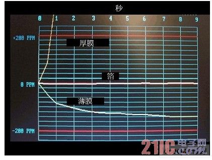 薄膜電阻具有相當強的均質結構,因此噪聲較低。薄膜是通過在陶瓷基板上蒸發或者噴濺電阻材料(例如:氮化鉭(TaN)、硅鉻(SiCr)和鎳鉻(NiCr))沉積形成的。根據電阻值的不同,該層的厚度范圍一般為10到500埃。薄膜中的噪聲是由夾雜、表面缺陷和不均勻的沉積(當膜較薄時,更加顯著)造成的。這就是電阻膜越厚,電阻值越低,從而噪聲等級越低的原因所在。