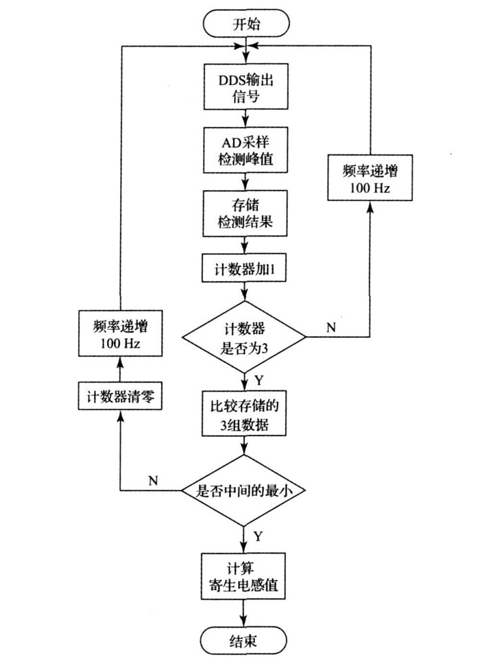 精確的測量寄生電感, 對于電容的合理應用具有十分重要的意義。本文介紹了一種利用LC 諧振原理測量電容自身寄生電感的方法。利用直接數字合成器產生可編程的掃頻信號激勵含有寄生電感的電容,同時采用對數檢波器對經過待測網絡后的信號進行檢波,在利用AD 轉換器采集檢波器輸出的直流信號。利用特定的程序算法比較連續的頻率點的輸出電平,最終找出諧振點頻率,求出電容的自身寄生電感。該方案由于采用了不同于常規LCR 電橋的原理,非常適合微小電感的測量,即使對于射頻領域使用的微小電感也可以精確測量。其測試結果與采用網絡分析儀測試的結果十分接近,基本可以滿足大多數應用場合。