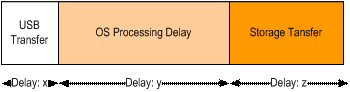 3.延遲Z是指數據在USB和存儲設備之間傳輸所需的時間,這取決于請求類型。還取決于直接存儲器存取結構和存儲設備類型,并不取決于USB速度,因為這里瓶頸會是存儲速度而不是USB速度(如SuperSpeed)。延遲Z可能在幾毫秒和數微秒之間,取決于存儲設備類型和數據大小。