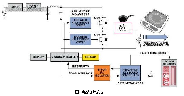 由于在大電流電感電路中可能會產(chǎn)生大電壓,因此在系統(tǒng)中的關(guān)鍵位置提供電氣隔離是十分重要的。特別是電磁爐的功率級與微控制器和其它數(shù)字電路隔離。一種隔離方法是使用隔離IGBT驅(qū)動器。與傳統(tǒng)的隔離解決方案相比,基于ADI公司創(chuàng)新的iCoupler®技術(shù)的低成本隔離門級驅(qū)動器串聯(lián)電路具有很多優(yōu)點(diǎn)。