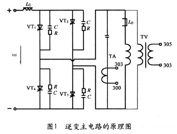 圖1為逆變主電路的原理圖,L0是啟動磁環(huán),TA是電流互感器,TV是電壓互感器,分別為反饋電路提供檢測電流和檢測電壓信號。
