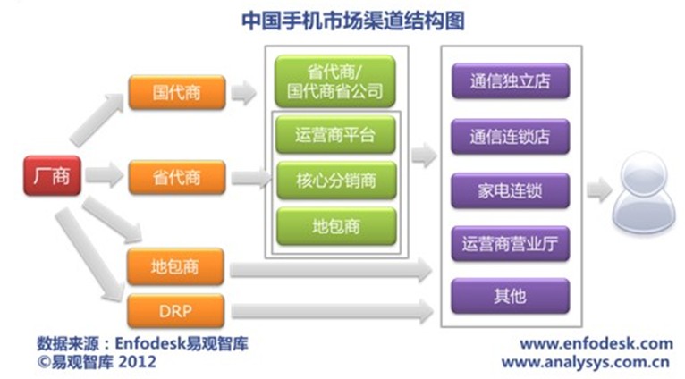 根據(jù)易觀智庫(kù)分析,目前我國(guó)手機(jī)市場(chǎng)渠道開始進(jìn)入轉(zhuǎn)型期。首先一個(gè)比較明顯的變化是手機(jī)廠商直供模式的加強(qiáng),渠道的扁平化趨勢(shì)進(jìn)一步加劇。比較明顯的一個(gè)例子是三星手機(jī)的渠道改革,從2010年12月起,三星手機(jī)全面推行了直供模式,經(jīng)過(guò)一年多的發(fā)展,三星對(duì)手機(jī)渠道的把控能力不斷得到了提升。