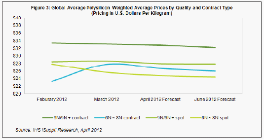 據IHS iSuppli公司的光伏(PV)展望報告,光伏產業關鍵原材料多晶硅生產技術過剩,將導致供過于求,造成其價格進一步下滑。