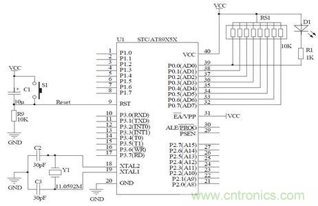 由軟件清0關(guān)閉定時(shí)器1。當(dāng)GATE = 1,且INT1為高電平時(shí),TR1置1啟動(dòng)定時(shí)器1;當(dāng)GATE = 0時(shí),TR1置1時(shí)即可啟動(dòng)定時(shí)器1.
