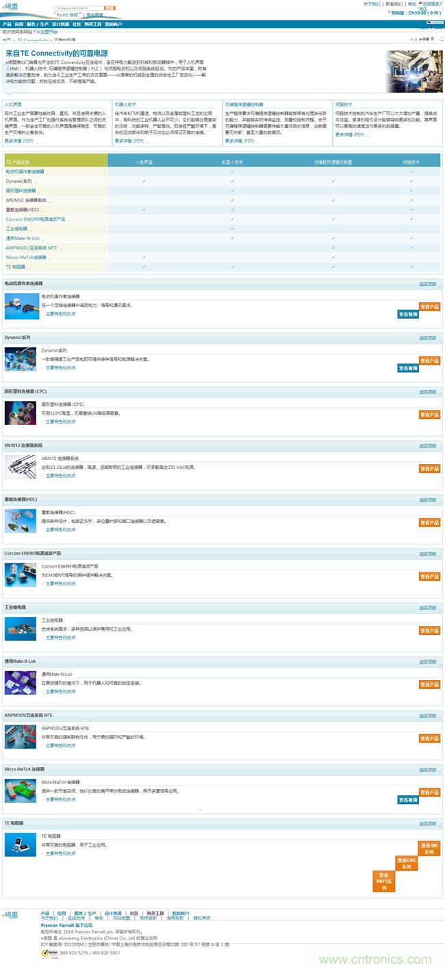 TE Connectivity 亞洲區(qū)渠道銷售副總裁Sean Miller表示:“自動化是當(dāng)今工業(yè)生產(chǎn)工序的一個重要保障。我們很高興能夠借助e絡(luò)盟全新子站的強(qiáng)大增強(qiáng)功能為我們的客戶提供更加優(yōu)質(zhì)的用戶體驗(yàn),使他們能夠更加方便地查看并選購TE廣泛的互連產(chǎn)品。除了能夠更加快速地評估并選購HMI或PLC設(shè)計(jì)所需的產(chǎn)品,我們的客戶還可享受到e絡(luò)盟提供的一流客戶服務(wù)和技術(shù)支持。”