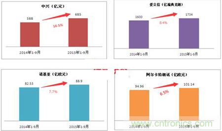 圖表3:其他四大設(shè)備商2015年前三季度營收情況
