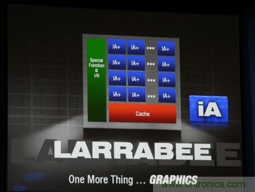 在2007年的IDF上,Intel正式揭開獨(dú)立顯卡——代號“Larrabee”的神秘面紗,Larrabee隸屬于其萬億次運(yùn)算項(xiàng)目(Tera-scale),也將是Intel的第一款實(shí)用級萬億次運(yùn)算處理器,其處理能力“大大超過”一萬億次浮點(diǎn)每秒;根據(jù)Intel首席架構(gòu)師EdDavis的演示文稿,Larrabee基于可編程架構(gòu),主要面向高端通用目的計算平臺,至少有16個核心,主頻1.7-2.5GHz,功耗則在150W以上,支持JPEG紋理、物理加速、反鋸齒、增強(qiáng)AI、光線追蹤等特性。
