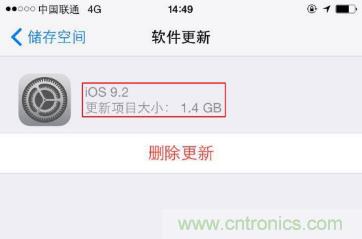 各手機廠商的操作系統版本不一樣,所以實際上大家能用的內置存儲空間還會進一步的減少。安卓手機如果是16G的存儲空間,其實都給data分區分了2.93G,除了data/system/cache等系統分區(這些分區大小由廠商而定),其余的就是用戶可用的存儲空間。安卓系統要占用一部分空間,蘋果手機系統也是如此,比如,蘋果的IOS9.2系統就有1.4G這么大:
