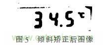 由圖4(b)可以看出,經膨脹處理和邊緣檢測后的圖像可以將液晶屏數字的輪廓勾勒出來。對圖4(b)進行霍夫變換,可以獲取圖像中每條線段的端點,進而可以求其反正切函數,即求得每條線段與橫軸之間的夾角。對其余傾斜角求取平均值,即認為是圖3(c)的傾斜角度。