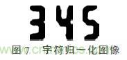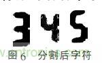 得到字符在圖像中的位置后,即可將字符從圖像中分割出來。由于實際分割過程中每個字符大小不一致,如圖6所示,所以對分割字符進行歸一化處理,使不同字符的大小統(tǒng)一為固定大小,便于后續(xù)字符分割。首先將圖6中字符周圍的空白位置切除,然后采用三次樣條插值的方法,對源圖像附近的4×4個鄰近像素進行三次樣條擬合,最后將目標像素對應的三次樣條值作為目標圖像對應像素點的值。將字符歸一化以后,所得各個字符如下圖7所示。