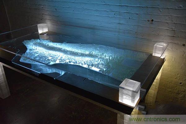 【導讀】在紐約長大的藝術家Troy Huang使用3D打印和激光切割技術制作了一張讓人驚艷的桌子,這張桌子上布滿了曼哈頓的每一棟建筑模型。這就是曼哈頓城區的微縮模型,盡管是微縮的,但是其中的每棟建筑、每條街道都清清楚楚,十分精細,再用LED燈點亮,一座燦爛輝煌的世界之都呈現在我們眼前。