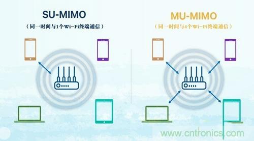 但MIMO(也稱SU-MIMO,即單用戶多輸入多輸出)也有自己的缺陷——會產生MIMO間隙。簡單來說就是目前我們熟悉的無線路由/AP大都有3-4根天線,但WiFi終端通常只有1-2根天線。而采用MIMO技術的無線路由/AP同一時間只能與1個WiFi終端建立連接和通訊,因此WiFi終端很難全部占用所有傳輸信道,即無法占滿無線路由/AP的全部容量,這種差異就被稱為MIMO間隙。