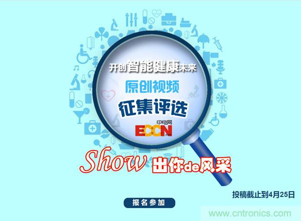 為了推動“智能健康”技術的萬眾創新,中電網將以“技術要點+在線研討會”形式掀起一股全民“錄原創視頻、贏現金大獎”活動。如果您在“智能健康”行業領域“才華橫溢、智慧無處安放”的資深技術大神,請您拿起手機or DV,用您的“專業知識”給我們錄制專屬的“智能健康大講堂”!!