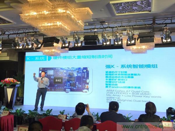 隨后,李智展示了全志最具擴展性的智能硬件開放平臺R40系統,R40有遠場語音交互、多顯示接口和音視頻編解碼等優勢,非常適用于語音助手、機器人、定制化的安卓多媒體系統產品開發。